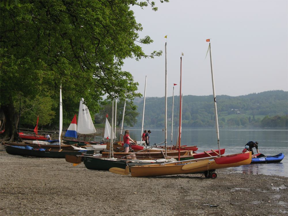 Encouraged by the sunshine all week I suspect, more than usual numbers arrived on Friday. By the time we got there, camps were set up, boats were rigged and several people had been sailing during the day. Again this year, Coniston was a centre of activity; the Keswick to Barrow race (going along the East shore of the lake) took place on Saturday and early on Sunday morning we heard cyclists setting off from the campsite for the start of the Fred Whitton Challenge, 117 miles over all the passes in the Lake District.